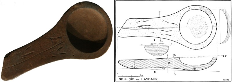 This precisely crafted lamp found in the cave of Lascaux in France is about 17,000 years old. On the right is a drawing showing how exact its construction was.